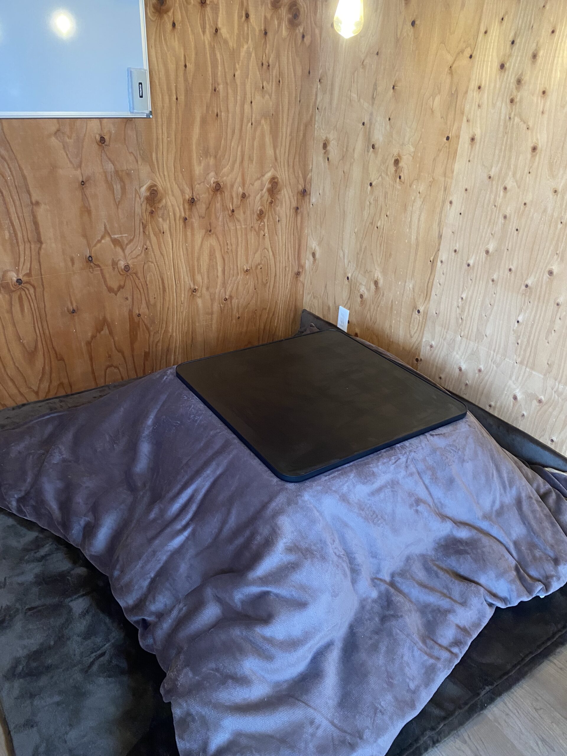 お店の一角におこたをセットしましたよ♪ こたつキャンプの予約がない冬季限定で、ご利用できます!